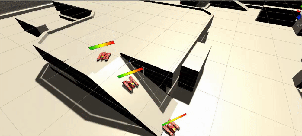 The next step I took was to refine the enemy behavior once they were in shooting distance. I was tasked to make it so the enemy would stop in place, but the turret on top would rotate around tracking the player and shooting if in range. I knew that once the player was out of range that the enemy would need to readjust their position to chase the player properly, so I added some code that rotated the turret back to its original position and then rotate the whole enemy towards the player to continue chasing them. After refining the enemy AI, it was time to implement the NavMesh into the first iteration of our level and tune up any areas or AI in the level.